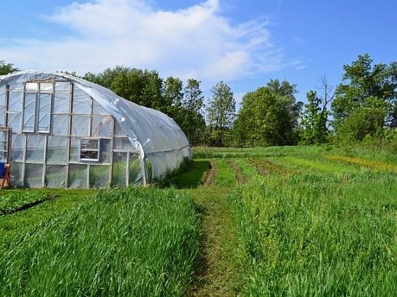 Beautifully located certified organic farm on 2.191 acres (1 acre residential and 1.19 acres agricultural) right across from a 300 acre DNR land with trout stream. Farm includes a cozy wood sided cabin with 324 sqf living space with kitchenette and 102 sqf bath/mud-room with tub, a 20x50 sqf greenhouse, and chicken coop and shed. Well, new septic tank, electricity and telephone in place. Stunning view from front porch across the DNR land. A gem you must see. Secluded location, yet easy access to Hwy 14.