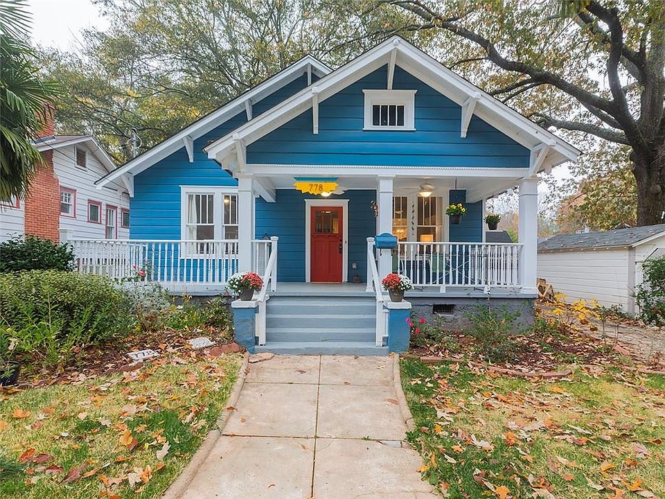 If you have been looking for that perfect four-bedroom Craftsman bungalow in Grant Park, prepare to fall in love with 778 United Avenue! Restored in 2020, this historic gem, once owned by the hostess of the Crepe Myrtle Garden Club that was formed in the 1930’s, has all the updated, modern conveniences while retaining that original charm of old. The front porches invite you into a warm, open living, dining, and kitchen area where the exquisite, original built- in cabinetry and fireplace will take your breath away. Half of the home contains the original hardwood flooring, paired with beautiful, ornate tilework in the bathrooms, closets, and on the stairwell risers. Original ceiling tins, a cast-iron window pull, and some original paneling were salvaged and incorporated into the home’s décor. Unwind in the bright, airy primary bedroom/bathroom suite that features a beautiful soaking tub and gorgeous tiled shower. The fourth bedroom upstairs is a cozy retreat on its own; it would be perfect for your home office, playroom, or meditation/exercise room. The owner has expanded the back deck area in the private yard that is perfect for entertaining and added a new beautiful shed for all storage needs. Being just minutes from the Beltline and countless urban amenities and activities, everything wonderful about intown Atlanta is right at your doorstep in this adorable home.