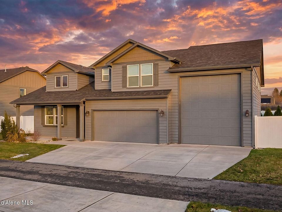 No HOA, an oversized lot with space for a shop, an impressive attached RV bay, and a main floor primary suite make this property perfectly suited for the Post Falls lifestyle. This .39-acre property features a desirable main floor layout with three bedrooms, two bathrooms, a living room with a fireplace, and an open kitchen finished with quartz counters, a large island, a walk-in pantry, and vinyl plank flooring. The bonus room upstairs adds an unexpected memorable touch with built-in bunks that create a versatile space for guests, play, or cozy evenings at home. The third bay attached 16x46 RV garage with a 14-foot door, loft, full insulation, drywall, and 220 power gives you room for all your toys. Outdoor living is made easy with a generous covered patio and built-in outdoor kitchen that make entertaining easy. The lot includes vinyl fencing, an eight-zone sprinkler system, raised garden beds, and room to build your dream shop.