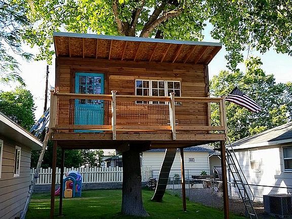Character & Space rolled into one home! New exterior paint on this large 4 bdrm, 1.5 bath home. Sits on a corner lot with 0.42 acres. Arched walk-ways & barrelled corners in bedrooms, vinyl windows, wired for gas or elect for range & dryer, insulated room for canning/pantry, tons of built-in storage! Save big money with a sandpoint well for watering the yard on a timer, oversized garage w/heat & air, storage bldg, cov patio and all kids love the tree house! Large area for parking toys/RV.
