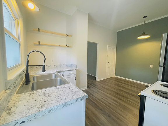 This newly renovated 1-bedroom, 1-bath apartment offers modern comfort with high ceilings and brand-new flooring throughout. The kitchen features updated countertops and custom shelving for extra storage. The bright living area with a ceiling fan provides a cozy atmosphere. The spacious bedroom is filled with natural light and includes a generous closet, while the updated bathroom boasts sleek fixtures and ample storage. Enjoy private access to your own deck, perfect for outdoor relaxation. Located in a safe, quiet neighborhood with a spacious parking lot, this apartment is just minutes from downtown Franklin's shops, restaurants, banks, USPS, UPS, grocery stores, and more.