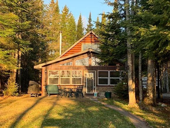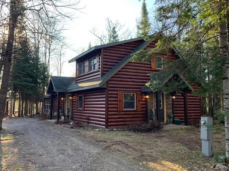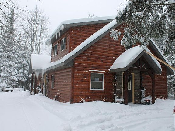 Long Lake attractive hand hewn log sided home and massive detached garage offering a lakeside screened in porch and upper level finished rec room with stone faced kitchenette wet bar and bathroom area! The home offers a great entry way featuring ceramic flooring, built in custom lockers, slop sink and laundry. Bright open concept kitchen, dining, living area showcase a beautiful stone wood burning Fireplace and log accents. Spacious lakeside family room is wrapped in windows, has a cathedral ceiling, pellet stove, dry bar and screams fun! A full ba and bedroom complete the main level. Upstairs you'll find an open loft bedroom, 2nd bath and 3rd bedroom. Newer wooden staircase leads to the perfect swimming frontage on this beautiful 373 acre lake. Additional custom storage shed, wood shed, pier, and appliances are all included!