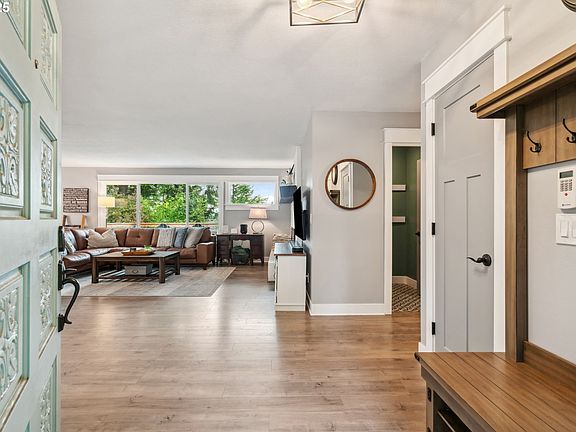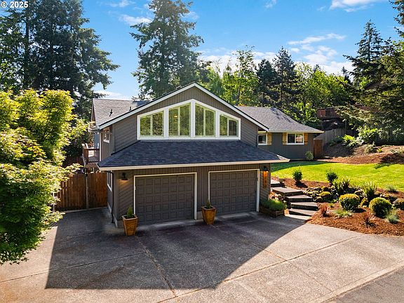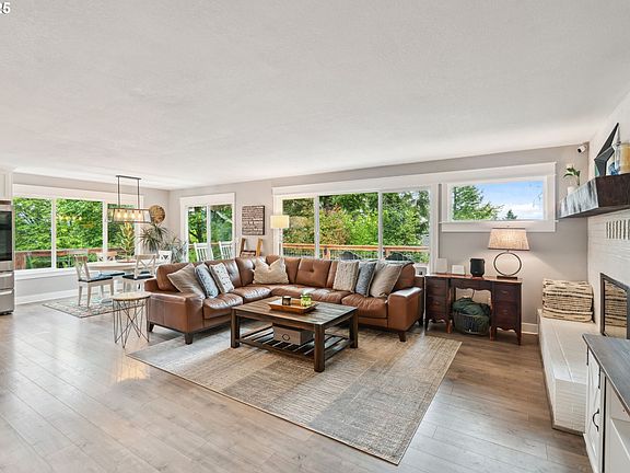 Fully updated haven on an oversized lot with eye-catching architecture, modern landscaping, and spectacular views. Inside, the open-concept living area flows seamlessly from the warm original fireplace to the corner dining room, and into the completely reimagined kitchen with oversized island, farm sink, sleek finishes, and premium appliances. Watch the sun light up Mt. Hood from the large windows, or with a cup of coffee outside on the large deck. Host intimate gatherings or large celebrations with even more space up a few stairs to the stunning loft family room with vaulted cedar ceilings, wet bar, wine refrigerator, and a bank of beautiful windows. All three bedrooms remodeled with inviting modern farmhouse-style finishes. The primary suite has French doors out to the private patio, barn door that opens to double mirrored closets, and a completely updated bathroom with double sinks and large shower. Attached oversized two-car garage wired for EV car charger and a large driveway with space for an RV, boat, or play. Many more thoughtful upgrades including: New AC, insulation, electrical panel, roof, Milgard Windows, and tankless water heater. Enjoy all this in an idyllic neighborhood just a simple commute to Clackamas Town Center, coffee, shopping, dining, and more.