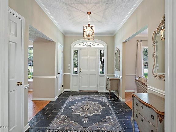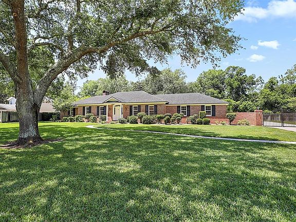 There's no place like this home! Brick, Deerwood one-level classic with plenty of room for everyone. You'll find a separate living room/office, dining room, BONUS room, and a Large family room that OPENS to the kitchen. Wonderfully REMODELED kitchen offers both a large island and a breakfast bar. The Master Bedroom is private from the 3 additional bedrooms and has an elegantly UPDATED Master Bath. Relax on the lanai while you enjoy the private ½ acre plus yard. Plenty of room for a pool! Walking distance to outstanding optional club amenities like golf, swimming, tennis, gym, and dining. Enjoy the neighborhood park and community events like Food Truck Mondays. Gated and conveniently located to Town Center, Beaches, & highways. Home includes 2-10 standard home warranty.