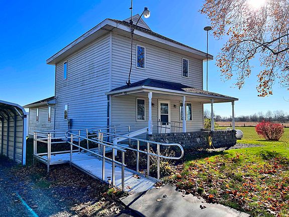 What a great opportunity to get to the country! This farmhouse has had all the high ticket items taken care of! From the new tear off roof to the complete HVAC system, you won't have to worry about anything but updating it with your personal decor choices! Before entering the home take note of the large front porch! On the main level you will find a family room, formal dining room, a large kitchen with all appliances included! The master suite is also on the main level and has 4 closets.....two of them being walk-in! The bathroom is large and has a dual vanity with a large mirror! The laundry , complete with washer and dryer, s conveniently located at the back of the house off the kitchen. There's a mounted ironing board and also a built in space for a stand up freezer or 2nd refrigerator! The main level is complete with a 1/2 bath for guests. The upper level has three bedrooms and a full bath. Most of the windows in the home have been updated. The basement has loads of storage space and built in cabinets. The 2 acres comes complete with a huge barn, garden area, and a car shed. This property is being sold with all contents of home and barn included.