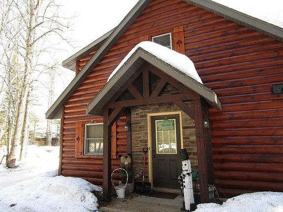 Long Lake attractive hand hewn log sided home and massive detached garage offering a lakeside screened in porch and upper level finished rec room with stone faced kitchenette wet bar and bathroom area! The home offers a great entry way featuring ceramic flooring, built in custom lockers, slop sink and laundry. Bright open concept kitchen, dining, living area showcase a beautiful stone wood burning Fireplace and log accents. Spacious lakeside family room is wrapped in windows, has a cathedral ceiling, pellet stove, dry bar and screams fun! A full ba and bedroom complete the main level. Upstairs you'll find an open loft bedroom, 2nd bath and 3rd bedroom. Newer wooden staircase leads to the perfect swimming frontage on this beautiful 373 acre lake. Additional custom storage shed, wood shed, pier, and appliances are all included!