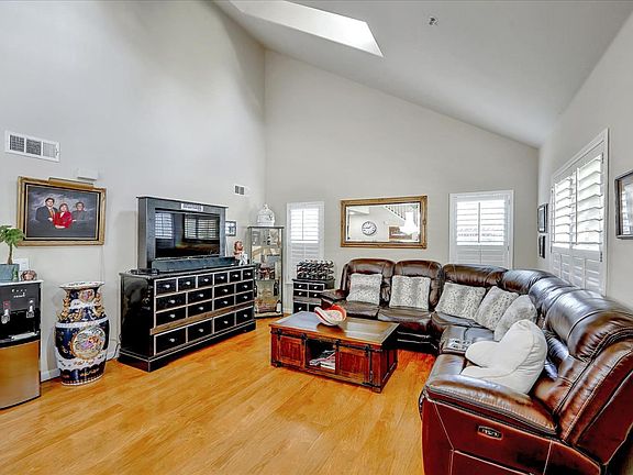 A great opportunity to live in this spectacular, serene, and tranquil area of the Village Green Senior Community for residents 62+. Buyers can be younger than 62, however, renter or occupant must be 62 or older. The Master bed/bath is located downstairs that is accessible to a patio with Sunsetter retractable awning, just a perfect way to relax and enjoy the backyard. Home is equipped with water softener that is included; gutter was installed with $4000 leaf filter; brand new, stainless steel, top of the line appliances, as well as a gorgeous and glaring chandelier included. Hardwood laminated flooring, window shutters, granite countertops, upgraded cabinetries, surely, a huge plus. The gated community has pool/spa to enjoy during the hot summer days. Walking trail, dog park, dining, shopping, golf course, wineries, are just minutes away.