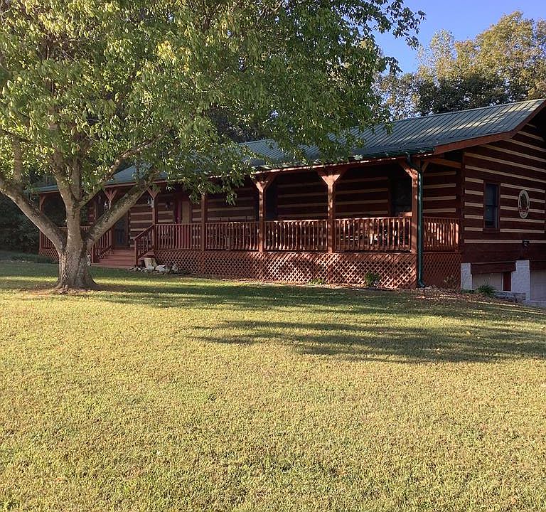 Looking for a pristine log home in a beautiful yet convenient country setting? And near Sunset Marina at Dale Hollow? This is it! Rock on the covered front porch in true Tennessee style and take in the view of the rolling pasture and mountains. Woods surrounds this property for your seclusion and privacy. Home is located near the end of a dead end road, so there is very little traffic to deal with. Wood interior, hardwood floors, gas stone fireplace in open living room with dining area, new custom cabinets and high end appliances, granite countertops, eating bar, and ceramic tile floors in this spacious kitchen. Laundry room with extra storage exits onto covered back porch. Master bedroom and private bathroom with jet tub and shower, 2 other bedrooms share hall full bath. Drive in 2 car basement garage plus 24x30 outbuilding. You just have to see it...no disappointments here!