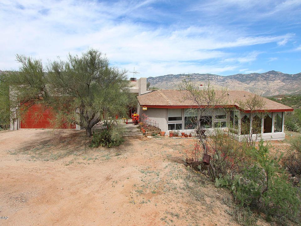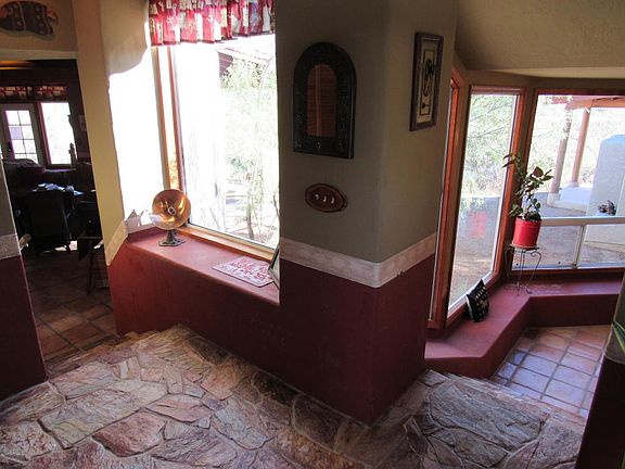 Here's a beautiful and well-built rammed earth home with 24 inch walls and excellent insulation. Soaring ceilings, gorgeous wood beams, 2 wood burning fireplaces, and amazing views from every room. This custom home gives you privacy, horse facilities, large guest bedrooms, Arizona rooms, Saltillo tile throughout, dual sinks in the master, newer septic system, 30 year architectural shingle roof, a private well, 2 heat pumps, 2 water heaters, and so much more! Come sit on the wrap around porch and experience top notch bird watching, an incredible nights sky, and the most amazing sunrises and sunsets you'll see in the desert. Located in one of the best school districts in the state and on a county maintained road. Old world charm and country living, only 15 minutes from town. Paint allowance!