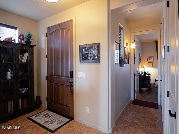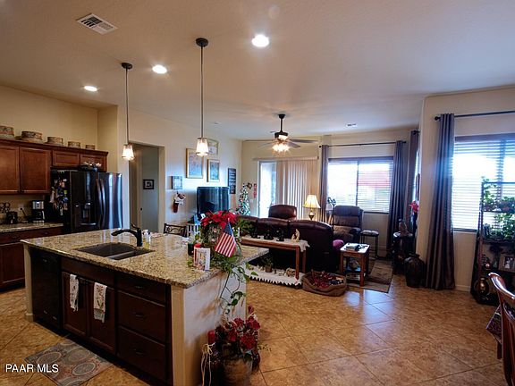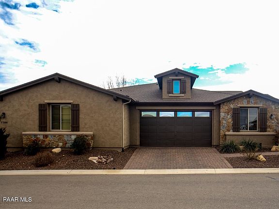 Lovely townhome by one of Prescott's premier, energy efficient builders. Builder & owner upgraded 2-BR, 2-Bath home w/ almost zero maintenance yard. Large open living room-to-kitchen layout including large glass sliding rear patio doors to extended pavered back patio and views. Upgraded flooring throughout, tile & carpet. Granite counters in kitchens & bathroom. Upgrade window coverings and custom made drapes. Roll out cabinets in kitchen and bathrooms. Custom built outdoor pergola. Built-in storage cabinets in garage. Upgraded fixtures and ceiling fans throughout. Tankless hot water heater. Fenced back yard. Home shows pride of ownership and extremely well taken care of. Near subdivision clubhouse which includes indoor & outdoor pools, fitness center, tennis & basketball courts, etc.
