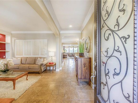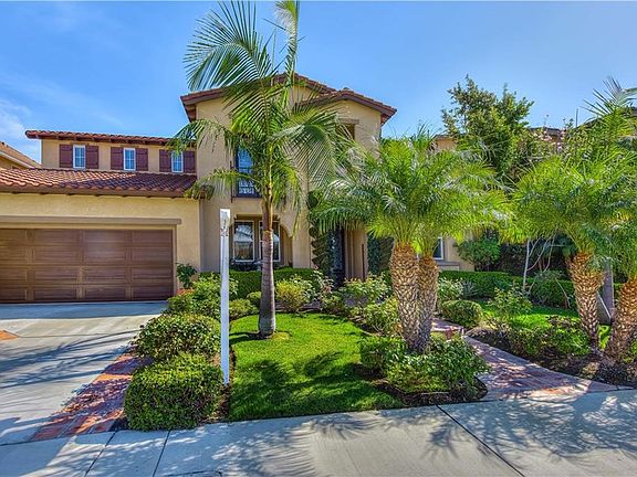 Truly a beautiful home in Serrano Heights. This is the one you've been waiting for! The community sits high on the hill allowing for unending ocean breezes, extensive views from the mountains to the coast and peace and quiet away from the hustle & bustle of city life! This friendly neighborhood is the perfect location close to schools, shopping, transportation and away from heavy traffic! The home has been beautifully upgraded with travertine versailles pattern on the main floor, along with hickory hardwood, wrought iron railings, custom mantel, built-ins, updated cooktop, light fixtures, granite buffet in dining room, patio hard scape, finished garage with a extensive cabinet storage. In this floor plan, the heart of the home features an open kitchen with an over sized custom island, breakfast bar, casual dining area with a built-in desk, adjoining the lovely family room crowned by box beamed ceiling. The built-ins house the TV and components next to the handsome custom fireplace mantel. No one will feel left out in this floor plan, it flows and offers a great space for entertaining. The main floor bedroom suite is a perfect guest room or maids quarters. Upstairs features a spacious loft, Jack & Jill bedrooms and the private master suite.