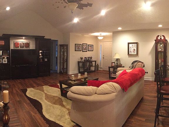 All brick residence with many personal touches that make this a very special and functional home. 22’ x 20’. Covered patio with with stone fireplace, built in wood boxes, and two emote control ceiling fans; built in book shelves in living room; built in shelves in spare bedroom closets, in-wall high tv mount in master bedroom; granite countertops throughout; ceramic tile in kitchen, living room, and bathrooms, fresh paint, GA flagstone flowerbeds; healthily weed free lawn.