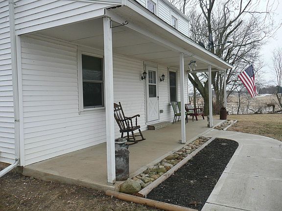 3 BR/1.5 BA updated country farmhouse on 4+ acres with 1600+ sq. ft., barn, detached garage, milk house/chicken coop, grain bin, and covered front porch. First floor laundry, some hardwood floors, mature trees and fruit trees. Newer windows/storm doors, insulation, vinyl siding, gutters/downspouts, hot water heater, electric, plumbing and furnace (plus much more)! HMS Home warranty in place! Over $45,000 worth of improvements/updates have been made as part of the Delaware County Rehabilitation Program.