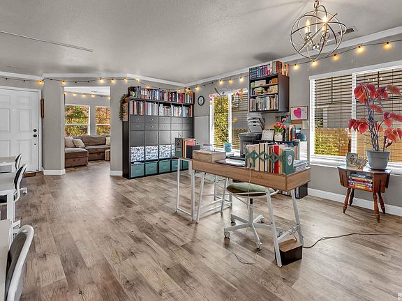 Open House 10/14 11am-1pm. Well maintained single-story home with flexible floor plan to accommodate a large family. 3 bedrooms PLUS additional office/den area off main room (currently used for homeschooling classroom). Coffee station & pantry cabinets added. Upgraded laminate flooring throughout main living areas add warmth and that modern touch. Enjoy warm fall evenings on the gorgeous backyard deck and relax with easy-maintenance artificial turf lawns., Located in desirable neighborhood, close to shopping, restaurants, & Hwy 395.