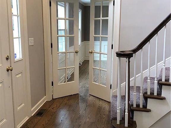 New Facelift: freshly painted, newly finished hardwood floors and new carpet. Colonial on 5+ private, wooded acres. 2-story foyer with lovely curved staircase. Spacious, eat-in kitchen with double ovens, hooded cooktop, snack center with microwave, prep sink in island and large glass-fronted pantry or display cabinet. Family room with stone fireplace and french doors to large deck and view of the woods. First floor mudroom and laundry. Master suite with vaulted/beamed ceiling, walk-in closet and bath with double sinks, whirlpool tub and steam shower. Large carpeted basement has spacious recreation room, full bath and lots of storage space. 3-car garage. Windows new in 2014. Owner agent.