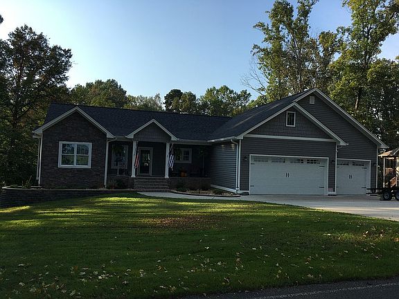 This is a custom built, open concept home featuring a split 3 bedroom, 2 bath, 3-car garage design. The main level also has a nice size laundry room with cabinets and granite tops to match the rest of the home and a 16x16 four season sunroom with large covered decks off two sides of this room. The livingroom has a large Kozy Heat vented gas fireplace with multiple settings for flame and blower control. The large master suite has two walk in closets and it's own exit to one of the covered decks off the sunroom. The master bath has a large custom tile shower and dual sinks. The main level has 9 ft. ceilings and are vaulted in the common areas. The flooring is all wood and tile (no carpet), all counter tops are granite. The home has upgrades in windows, insulation and the HVAC system resulting in low energy costs. The walkout lower level was completed with Superior Basement Walls and is designed to add two more bedrooms with dual windows in each room, a full bathroom, a large family room with three windows and two sets of patio doors. The lower level also has a large storage area and a mechanical room. There is a 400 amp electrical service for easy expansion of the lower level. The HVAC system is zoned for the upper and lower levels.