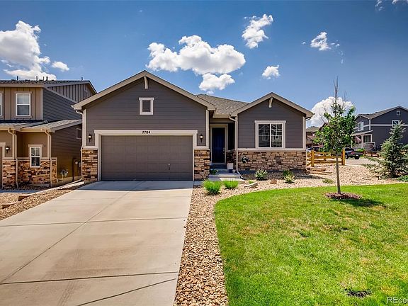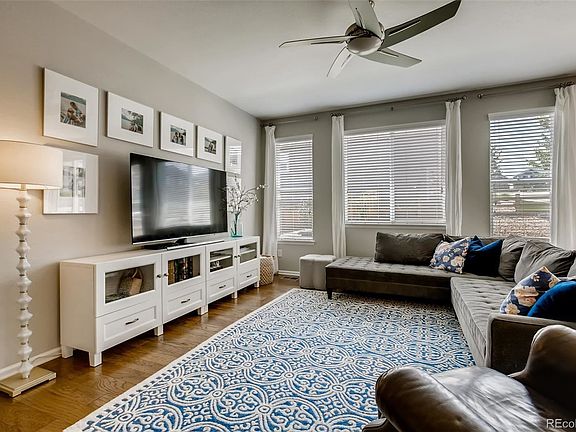 A beautiful and ideal home for first-time buyers or for those wishing to downsize in the highly sought-after Cobblestone Ranch community of Castle Rock. From the front door, you enter into a light and bright foyer that leads to an open living area with lots of windows, a bright kitchen with a large island and plenty of counter space The master suite is separated from the two other main floor bedrooms, either of which may be used as an office. From the garage, you enter through a combination laundry and mudroom. The backyard provides space for children and or pets to spend time outside. Outdoors is one of the highlights of this community and from this home, you are less than 400 yds from the community pool, playground, and tennis courts, and there is easy access to both paved trails and unpaved trails for biking, hiking, or running. The location provides equal access to amenities of Parker as well as Castle Rock. AVAILABLE FOR QUICK CLOSE Includes all kitchen appliances