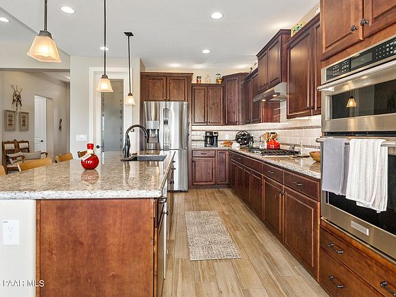 Holidays are over and this home is back on the market and ready for new owners. Newer Semi Custom Home with Views! This home sits on a flag lot with panoramic views of mountains and golf course. 2663 Sq Ft Split Floor Plan. 3 Bedrooms, 3 baths and a 3 car garage. Wall of Windows in the Great Room to see the surrounding views. Tile through all the main living areas, carpet only in the bedrooms. As soon as you walk into the foyer you will see the views out the windows. Floor to ceiling stone wall with gas fireplace and mantel. Granite counters, Composite Granite Sink, SS Appliances, Gas Cooktop, Formal Dining or convert to Office/Den. Nice sized Primary Bedroom with a private deck for morning coffee to take in the wild life and views. cont.