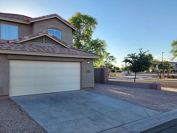 Assumable Loan 3.7 % Nestled on a corner lot adjacent to a verdant common area, this charming two-story residence exudes warmth and comfort. Boasting five bedrooms and three baths, including a convenient downstairs bedroom and full bath, it offers ample space for relaxation and entertainment. Inviting kitchen with a breakfast bar, adorned with elegant granite countertops. A beautiful chandelier graces the dining area, enhancing the ambiance for memorable gatherings. Upstairs, a cozy loft complements the two baths and four bedrooms, providing a retreat-like atmosphere. Outside, a covered patio beckons for leisurely moments, while the two-car garage and RV gate offer practicality and convenience. Conveniently situated near Glendale Community College, shops, schools, park. Act now
