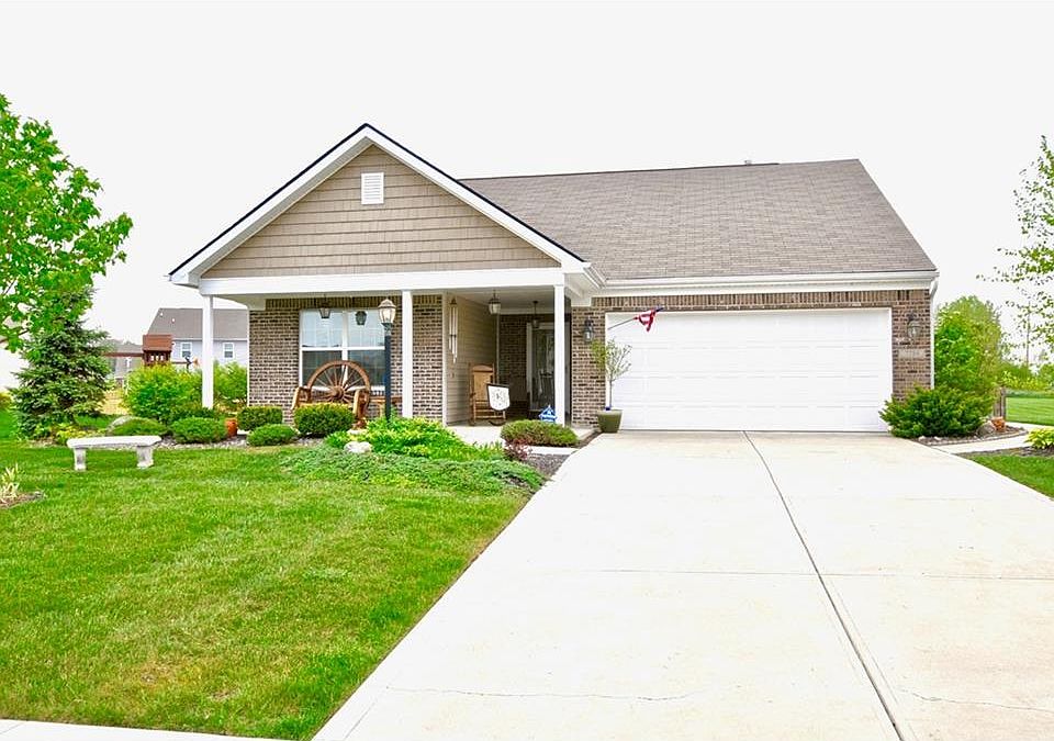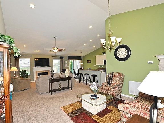 FORMER MODEL HOME! Dover floor plan w/3 bedrooms & 2 baths lives larger than sf. shows w/vaulted & cathedral clgs and open living area! Home features kitchen & brkfst rm, large brkfst bar, all open to the great room w/gas fplc, & surround sound speakers. Finished garage w/service door, large front porch, completely fenced rear yard & storage barn that overlooks common area behind. Spacious Mstr. w/walk-in closet and bath. This is a nice split floor plan for privacy. 1yr. home warranty!