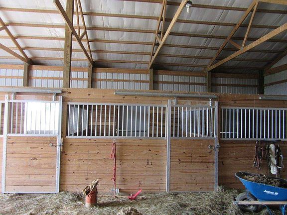 Saddle up and trot right over to beautiful Greene County! Sitting on 13.29 acres of lush rolling grasslands is this magnificent property ideal for building a home and raising and riding horses. The rolling grasslands are set off with a 48' x 34' four stable barn complete with 400 amp electric service and water. Each stable has aluminum bar gates and plenty of room for hay storage. Outside of the stables there is additional room for hay storage, feeding and tack area. A small den for relaxing after a long day of training or riding is at the front end of the barn with a separate entrance. There is room for a refrigerator and microwave along one wall that has built in cabinets and counter top. This space could also be used as a private office or extended tack room. Do you need additional space for farm or horse equipment? Well no worries here because a second pole barn measures 40' x 36' and has 14' foot ceilings. Two garage doors, one 16' x 12' and the other 12' x 12' allow for plenty of options when moving equipment and vehicles in and out. The pole barn has a poured concrete floor and one section of the structure is studded off for a possible bedroom and bath. Water connection is nearby. A fenced riding pasture is sectioned off behind the stables leaving many choices for that perfect homesite. Utilities are in place and a septic permit is on file. Pictures can tell a 1000 words but you must see this pristine piece of land in person. Don't HORSE around and miss out on an exciting opportunity to own this prime property.