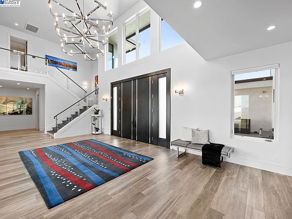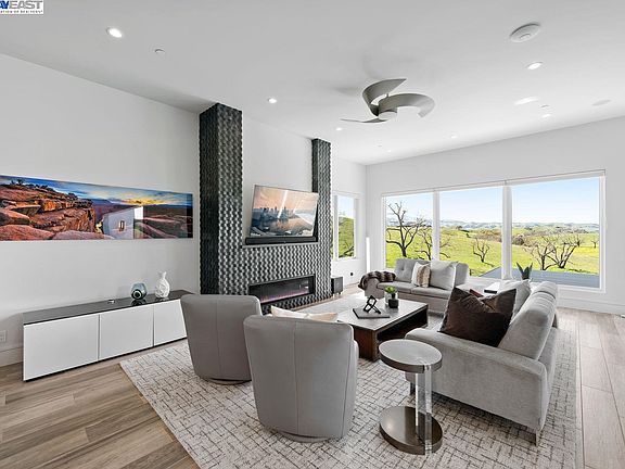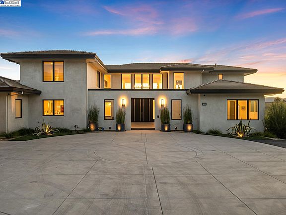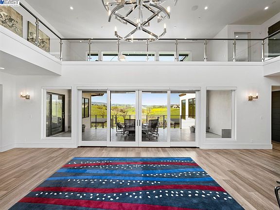 A majestic modern masterpiece awaits you at 7785 Laguna Heights, located in coveted Sunol. Located on a well-manicured 3.53 acres, this 9,826 SF elegant estate features 7 exquisite bedrooms with walk-in closets, 7 full luxurious bathrooms , 3 powder rooms, an elevator, natural light, premium heavy doors and a chef’s dream of a kitchen with Thermador appliances, including an induction cooktop, two dishwashers, and a mini fridge. Entertainment is a key part of life at 7785 Laguna Heights as it includes an amazing wine room with a glass enclosure, cooling unit, and a 600 plus bottle capacity, perfect for every connoisseur. Not to be missed, the in-ceiling speaker system throughout the house, including outdoor areas. The audio-visual equipment and cabinetry are integrated with Control4 technology. Step outside and be surrounded by the beauty of nature, along with infrared heaters on aluminum tiled balconies and patio, and a finished outdoor kitchen featuring a Lynx BBQ and two Bruster pergolas with louvres that open and provide sun protection. The salt water pool with spa has an automatic retractable cover and the outdoor fireplace is wired for TV above. Easy access to 680 freeway and major tech companies as well as minutes from downtown Pleasanton.