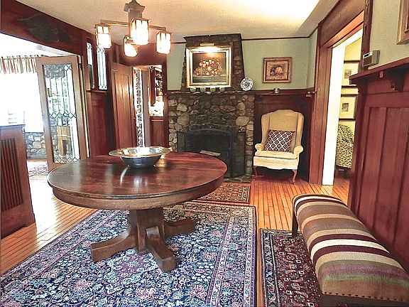 Only 20 minutes to downtown Cleveland, this extraordinary George Brown mini estate is located in the heart of Gates Mills Village. Built in 1905, this home is a prime example of the Craftsman movement, favoring Bungalow styles with detailed craftsmanship in all areas. The field stone walls, inside and out, the conical tower with curved front door and custom tile roof, the lead glass windows, as well as the carved wood interior trim, all represent what the movement was about: local natural materials and visibility of handicraft. Wood floors were made from harvested maple and straight grain old growth Douglas fir trees, right off the property. Round Porthole windows built into the stone, a berth bed built right into a wall, and paneled ceilings in the family room, all nod to Brown's love of nautical details. This 4 Bedroom, 3.5 Bath home sits on 2.5 manicured acres with an in-ground Gunite pool with Marcite finish, an in-ground hot tub, a studio building converted into a professional quality sauna (2008), a combined pool house/working greenhouse, and a 4 car garage with a summer sleeping room with bathroom, above. This special property feels like a vacation home through the summer months, and buttons up into a cozy abode during our Cleveland winters. Designated as a 'Legacy Home', in 2010, by the Gates Mills Historical Society. Ask agent for extensive list of improvements since 2007. Owner/Agent.