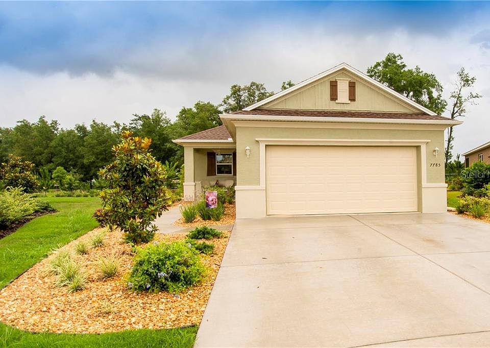 Why build when you can purchase a new home (2019)? With all the upgrades! This lovely Tamar model located in Indigo East offers 2 bedrooms, 2 bathrooms, flex room, beautiful kitchen, great room, inside laundry and a lanai. Enjoy your back view on this PREMIUM LOT with no neighbors in the back. The lanai has custom Bali shades and abuts the walking trail. Beautifully landscaped with a chain linked fence. All rooms have TV outlets on the wall. Crown molding, granite/quartz counters, ceramic tile. Brushed nickel faucets throughout the home and stainless steel sink. Lazy Susan shelves corner. The master bedroom has a tray ceiling and a walk in closet. Bath has a shower with glass swing door. Garage has added insulation with metal and wood shelves, 2 hanging shelves and 4 ceiling LED lights, making for an ideal workshop. Driveway width has been expanded. Washer, dryer, and A/C in garage do not stay. Located in Ocala's premier, 55+ community, loaded with amenities, including golf cart access to two shopping centers.