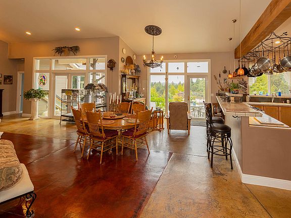 Looking for a private, mountain top estate just ten minutes from Eureka? This is it. End of road privacy with views for dozens for dozens of miles. The front door sets the tone with large and spacious, soaring vaulted ceilings, extra large windows to capture the big views and natural light all meet you as you enter. Large living space for large living. Contractor built personal home with extra amenities throughout the home. Radiant heated artisan concrete floors, enormous master bath with long views over the redwood studded valley. Green house and flower garden, enormous fire pit and sunken seated garden area and more areas private to each other within the spacious yard. This is rare to find quality in almost fairytale setting hidden from the rest of the world, yet close to town.