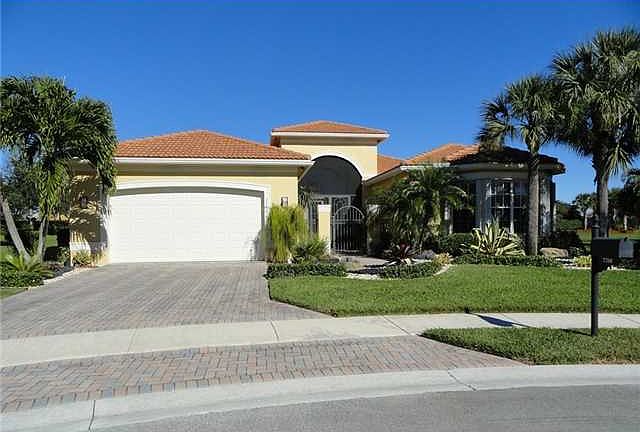 Active Adult 55+ Gorgeous home shows like a model. Located on an extra large private cul-de-sac setting offering water views through-out the home. Large great room with custom built-ins overlooking the lake. treatments and paddle fans. Master suite with his & her enormous california closets. Large masNeutral large Ceramic Tile flooring throughout the home and patio. Custom drapes, window ter bath with glass block & spa shower. Spacious kitchen with an abundance of upgraded cabinets and granite. Den with custom built-ins. Powder room features a wood cabinet and designer glass bowl. Laundry room with new whirlpool top load washer/dryer, granite counters. Recessed lighting throughout, All lighting fixtures have been upgraded throughout the home. High end Hurricane Impact Front double doors plus accordian shutters throughout the exterior. Professionally landscaped, tastefully designed. This home must be seen. You will not be disappointed. HOA includes: Hi def cable, security system hook-up, telephone line, internet, lawn care, exterior painting of the homes, cafe, luxurious clubhouse with entertainment, clubs, cardrooms, organizations, resort style pool and tennis courts. The Athletic Center features additional tennis courts, state of the art fitness center, lap pool, resistance pool, indoor and outdoor whirlpools, racquet ball courts, massage room, aerobic room, and hair & nail salon. In 2006 Valencia Shores was featured in Forbes Magazine as one of the 10 best Ritzy Retirement Communities in the U.S.