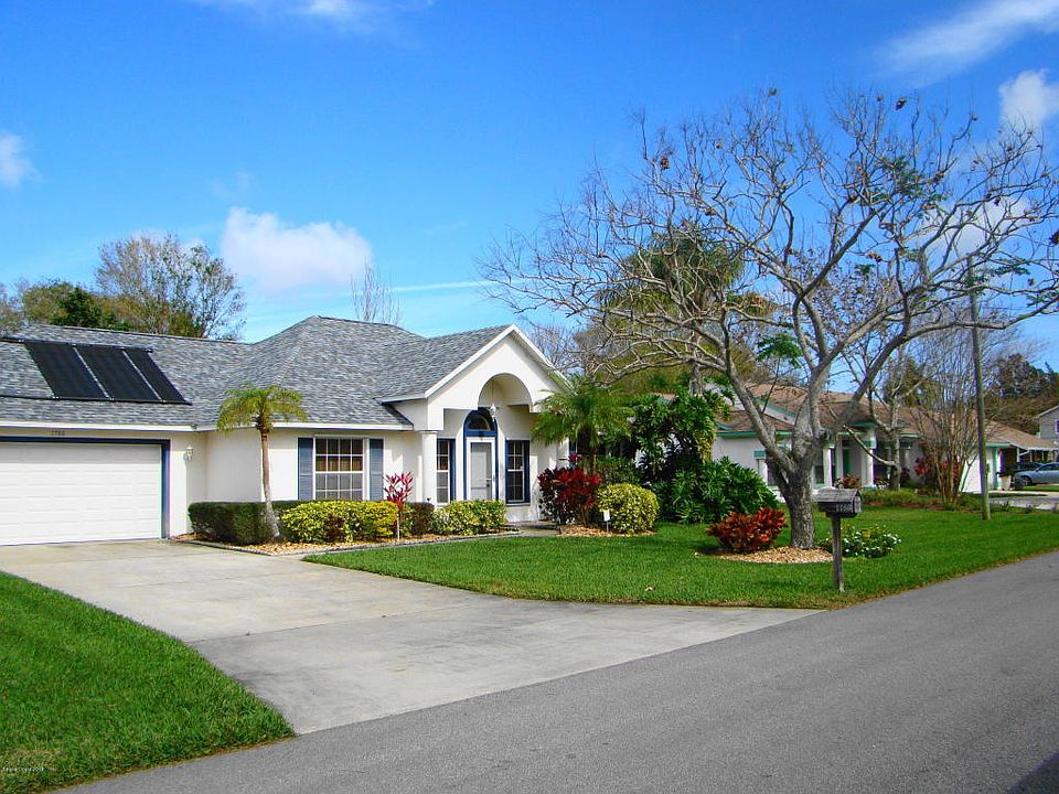 LOVELY SPLIT-BEDROOM: Light, Bright & open plan with VAULTED ceilings! This POOL HOME has nearly 1/3 ACRE with NO HOA on a beautifully tended & landscaped home with 5 year new ROOF, SOLAR & HEAT PUMP FOR FULL POOL ENJOYMENT DURING WINTER MONTHS - with 202 sq.ft. COVERED porch area & an amazing 918 sq.ft. SCREENED area! WOW! FULL HURRICANE PROTECTION FOR $$$$ OFF home insurance! TASTEFULLY REMODELED MASTER A-N-D- GUEST BATHROOMS! Bonus storeroom under air & HUGE laundry room! Rooms all good size. Tons of windows, separate dining room, family room. Gorgeous kitchen nook overlooks pool.FENCED 2015! NEW POOL PUMP 2018! BRING YOUR BOAT AND/OR RV! Just off Sheridan close to Wickham & Grumman, Harris, I-95, Airports MCO & Melbourne, movies,mall & restaurants! YOUR forever home? HURRY!