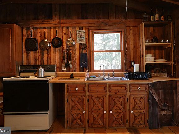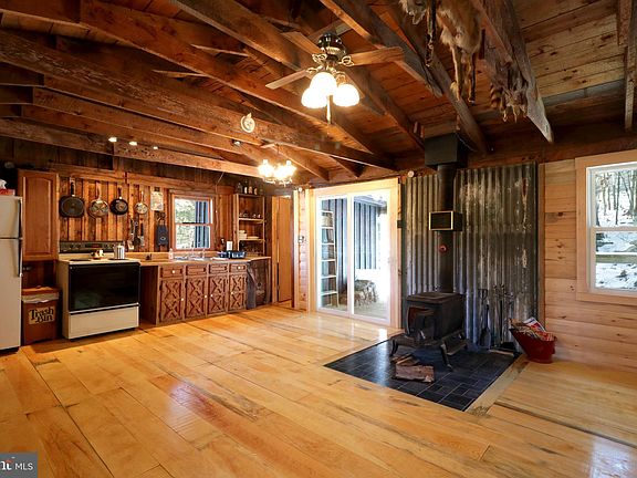 This is your cabin in the woods! Affordable yet refined, this small and mighty cabin delivers the comfy cabin vibe on a sizable 1.25 wooded acres of land. The refinished interior gives off that cozy cabin feel you are craving, while the wood stove will deliver the warmth you want. You'll love the details, like the branded barn doors into the two bedrooms. There is a full kitchen for meals in, and restaurants nearby for nights out. Relax on one of the two good-sized porches on those quiet and crisp spring evenings as you dream of the summer to come. Schedule your private showing now!