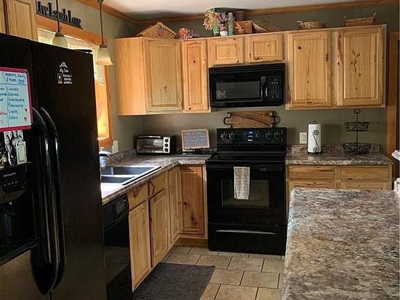 Beautiful, fully-remodeled country home with attached 2 stall garage and plenty of storage space. This 5 bed, 2 bath home is a must-see. Enter the kitchen where you will be met with a large island/breakfast bar and enjoy the open concept views of the living room and dining area. Walk down the hall and find 3 large bedrooms and a gorgeous full bath, complete with custom tile work around the sink and shower. A cozy sunroom with stunning brick work and a wood stove, along with French doors leading outside, complete the main floor. Take a stroll to the basement to find much more living space; 2 large bedrooms and another full bath make up one side of the basement while a wine/root cellar, family room with working fireplace, bonus room, laundry area, and basement entrance from the garage make up the other side. Outside, a custom-built swing set, relaxing patio space, storage shed, and a spacious front and back yard provide everything needed for work, play, and relaxation. With a new 50 gallon hot water heater, new water pump/tank, new plumbing and electrical, newer roof, and many new updates, this home is move-in ready! Schedule your showing today... this house will not last long.