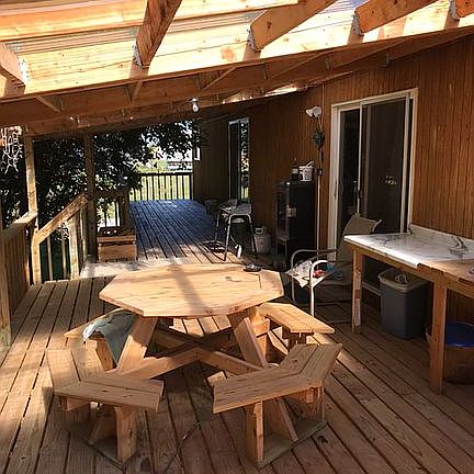 Outdoor private entertaining decks upper and lower. Upper deck 60 feet long 40 foot covered. Extra large shop attached. Barndominium style. Huge open space living.