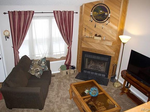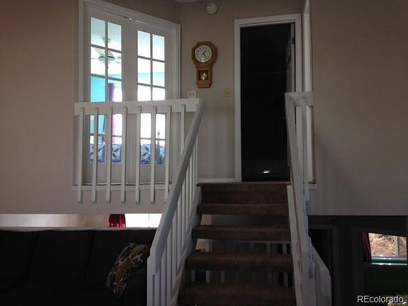 Tri-level; front/back. Main level is living room, eating area and kitchen. Up to master bedroom with french doors, full bath and 2nd bedroom. Down to office, half bath/laundry area and 3rd bedroom. New carpet, new counter tops, water heater 6 mos old, newer appliances. Open main area with cathedral ceiling in living room with 2 skylights. Side patio off eating area with storage area. 800 sq ft of storage area under main level. End unit next too large parking area and Arapaho park.