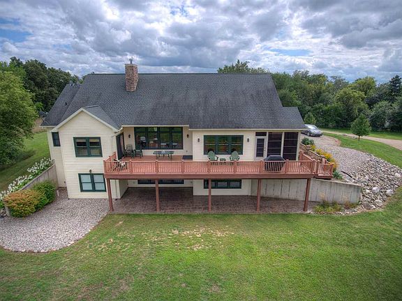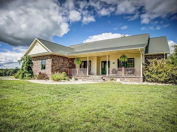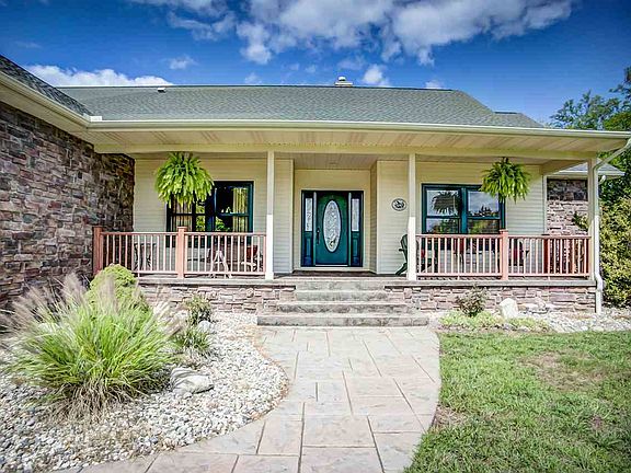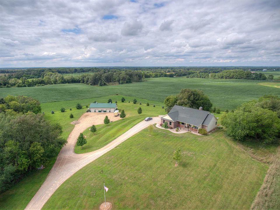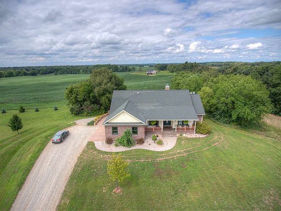 Sitting on just over 20 acres, this magnificent home has been meticulously maintained since this custom home was built by the original owners. Driving up the tree lined drive you will notice the ranch style home sitting on a bluff looking over the 20 acre property. The 34x6 front porch is perfect for sitting at the end of the day. As you enter the front door, on the left is a den that could be turned into another bedroom. Room was designed to accommodate that. From the entry you are graced with a large vaulted living room with floor to ceiling stone fireplace. Looking for an open concept? This is it. The kitchen, dining room and living room are all open to each other. There is also a screened in room off the dining room which leads to a treks deck that runs the entire back of the house. There are two bedrooms on the main floor with the master having a full bath with walk in shower. There is a half bath off the garage and oversized laundry room. The basement has an open concept also with walk out to a finished patio. There is a wet bar and the third bedroom with full bath. There is a movie theatre room and hobby/workout room. Features of this houses are security system, central vac system, surround sound, 4 bay fully insulated and heated barn with full bath, two septic systems, hot tub hook up available, closed loop geo-thermal and so much more. Just minutes from town.