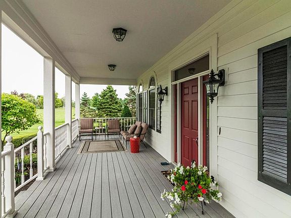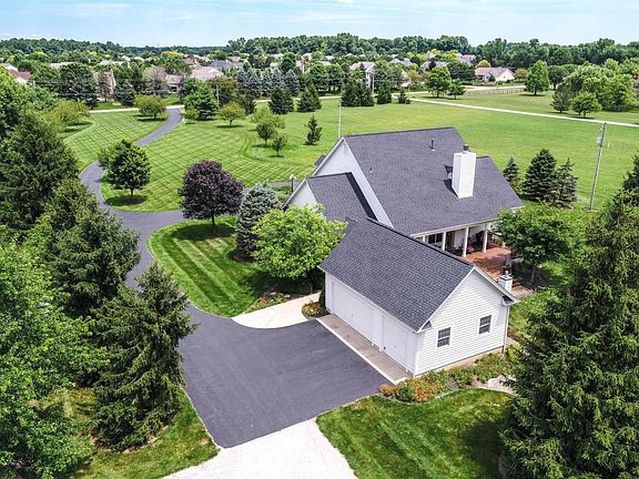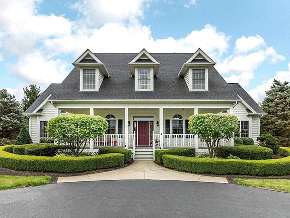 Nature Inspired! Abundance of windows throughout this Cape Cod home capture the beauty and elegance of this property perfectly situated on 5 acres. Features include over 4700 square feet of finished living space, 4 bedrooms, 3.5 updated baths, 2 story great room, first floor owner's suite, gourmet kitchen with maple cabinets, granite counters and stainless appliances. Enjoy the great outdoors on the large front porch or expansive deck. New HVAC and hot water tank in 2016. Roof and exterior lighting replaced in 2013. Finished basement with recreation and fitness spaces. 3 car heated garage. The 40 x 60 heated poll barn with 2 regular garage doors and over sized door. The mature landscaping and design create a timeless setting day and night!