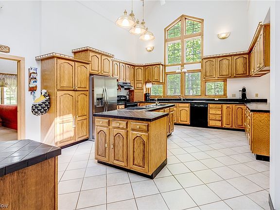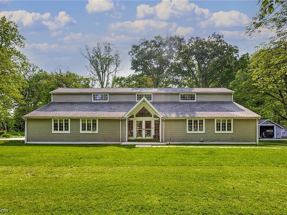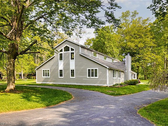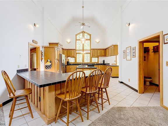 An artfully reimagined piece of Hubbard's History converted into this amazing home! This 4-bedroom, 3 bathroom on 3.8 acres in Hubbard Township is a transformed Church camp. You will be in awe walking into this home and witnessing the vaulted ceilings that offers so much natural light throughout the entire house! The eat in kitchen offers ample amount of cabinet space, tons of counter space and tile flooring and host a dining room area with access to the back patio. The vaulted ceilings continue through the living space and highlights the wood craftsmanship throughout the area. There's a small sitting area with a fireplace and also a front door entry area on the other side. A spiral staircase leads to the loft that overlooks the living room and kitchen with 4 closets. 4 Bedrooms on the main level that split, 2 bedrooms on one side and 2 on the other with great closet space in each room and 2 full bathrooms hosting each side. 1st floor laundry/mudroom and storage. Unique 1/2 bath. You