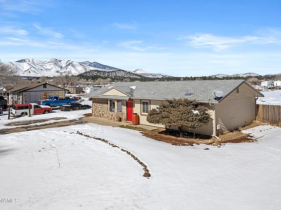 PANORAMIC SAN FRANCISCO PEAK VIEWS! A rare Flagstaff find under $500,000 on an acre! Tastefully updated throughout the home, and outdoor space with limitless possibilities. The detached shed can be used as a garage space or workshop, and an outdoor fireplace is great for entertaining. Less than 5 miles from grocery stores, restaurants, and retail. Schedule your showing today!