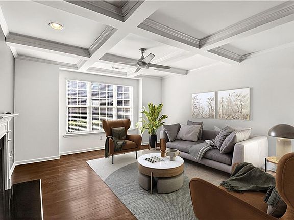 This spacious two-level, practically new 3 bedroom, 2.5 bathroom townhome has been freshly painted and updated, offering a sophisticated lifestyle in a highly convenient location. The open main level welcomes you with an open-concept living room featuring elegant coffered ceilings and a cozy fireplace. The gorgeous chef’s kitchen is fully equipped with quartz countertops, stained cabinetry, stainless steel appliances, and a massive walk-in pantry. The large eat-in island is perfect for morning coffee or casual entertaining, while a convenient half-bath completes the first floor. Upstairs, the oversized landing serves as a versatile bonus area, ideal for a home office, den, or playroom. Behind double French doors lies the primary suite, a true retreat showcasing a dramatic accent wall, tray ceilings, and a tranquil ensuite. You’ll love the dual vanity, deep soaking tub, and the sleek glass-enclosed shower. The two additional bedrooms share a hall bath. One guest room features private balcony access, offering a welcome outdoor escape to enjoy the fresh air. Additional features include a two-car garage and plenty of storage throughout. Living here means more than just a beautiful home; you’ll have access to fantastic community amenities including a pool, clubhouse, and tennis courts. Convenient to 85, the airport, and shopping in the immediate vicinity, you’ll settle in and love the neighborhood! Some photos have been virtually staged.