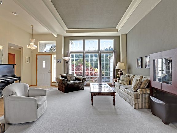NEW PRICE! Located atop Cooper Mountain Natural area, this one-level Barberry Heights home offers a luxurious and convenient lifestyle, along with stunning views of the valley and Mt. St. Helens. As you enter the living/dining area, you'll notice the custom coffered 12-foot ceilings and oversized floor-to-ceiling windows and skylights throughout that allow plenty of natural light to flow in. The open space between the living and dining areas is perfect for hosting gatherings and creating a spacious and unobstructed ambiance for relaxation, entertainment, and easy living. The Great Room/Kitchen is both functional and attractive, with custom Birdseye Maple soft-close cabinetry, stainless-steel appliances, including an Electrolux convection oven w hood, new dishwasher, beautiful granite countertops, and working island. The breakfast nook has slider access to enjoy the deck and outdoor living, while the mahogany floors and granite gas fireplace add an elegant touch to the overall design. The primary suite is a private sanctuary complete with French door entry, large soaking tub, walk-in closet, double sinks, and walk-in shower. Bedrooms 2 and 3 are connected by a Jack and Jill bathroom, adding to the functionality of the house. The outdoor area features low maintenance, professionally maintained natural landscaping with a sprinkler system and a spacious deck to enjoy. Need storage space? There's a large unfinished area along the exterior of the home, accessible by its own door and walking path. Customize this space to create a home office, gym, or craft/she-shed area. This home is perfect for those seeking a luxurious lifestyle in a convenient and tranquil location. It's centrally located to shopping, dining, hiking, wineries, and award-winning Beaverton Public Schools. Plus, it's a quick commute to Jesuit & Valley Cath high schools, Intel, and Nike. Recent upgrades include a Malarkey roof installed in 2022. Welcome Home!