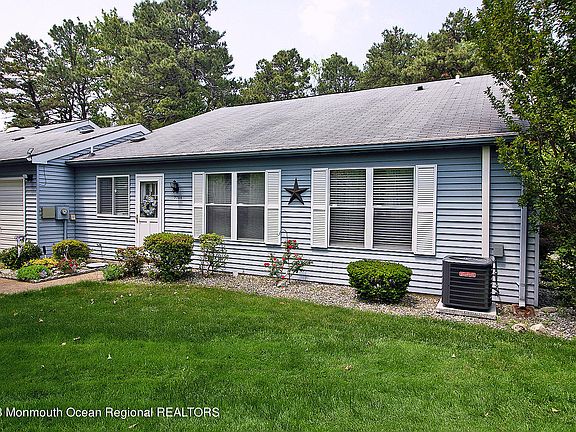 Beautifully maintained Hastings model at end of a quiet cul de saq. This beautiful end unit home is located on a serene wooded lot with lots of privacy. This home offers an open concept living room & dining room with sliding doors to the private fenced patio. The perfect place to relax with family and friends. The beautiful sunroom has French doors & large windows to let in the sunshine! Master suite has a large walk in closet and full bath. This home has a guest bedroom & a possible 3rd bedroom/office. Built in TV shelf in the living room. Laminate flooring in LR & Dr, new carpets in bedrooms. Active Community has many activities & clubs to enjoy, golf course, & 2 swimming pools. Close to shopping and the GSP. Move in and start 'ENJOYING YOUR GOLDEN YEARS AT THE JERSEY SHORE!