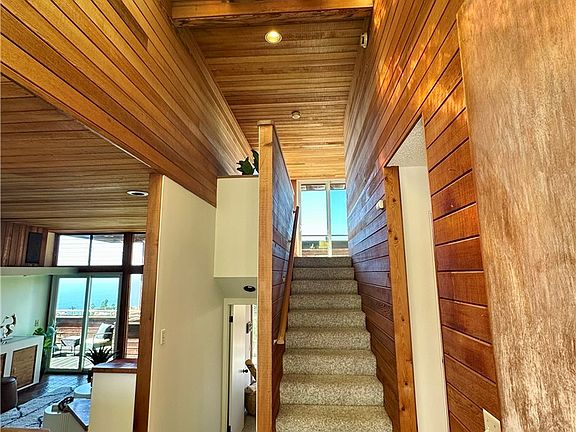 Perched atop Balboa Avenue, just steps from Moulton Meadows Park, this 1977 mid-century residence offers panoramic views of the Pacific Ocean, canyon, and coastline. Designed by award-winning architect Blair Ballard, recognized by the Laguna Beach Architectural Guild for excellence in residential design, this home reflects Frank Lloyd Wright’s organic architecture philosophy of blending structure and setting in harmony. Its multi-level layout features cedar plank walls and ceilings, expansive glass, strong horizontal lines and a timeless mid-century modern aesthetic.