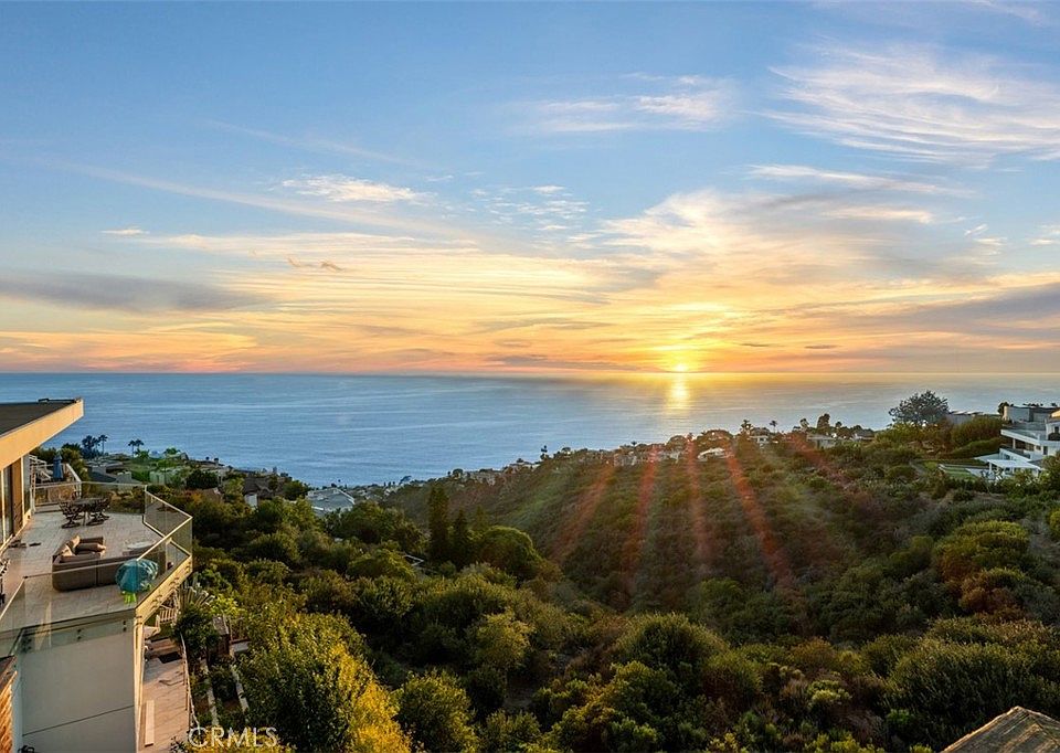 Two exquisite handcrafted stained-glass installations by Mogens Abel, revered wood carver and longtime Festival of Arts exhibitor, are set in the entry and kitchen ceilings and beautifully infuse the space with color, artistry and Laguna’s creative spirit. The primary suite offers stunning ocean views through walls of windows and includes a walk-in closet and a step-down shower with a full-length view window. Sliding glass doors open to the deck with a sunken jacuzzi for enjoying the spectacular sunset views over Victoria Beach. Two additional bedrooms off the main entrance hallway are ideal for a home office or guest room. Both the family room and upper-level den offer captivating ocean views and refreshing coastal breezes.