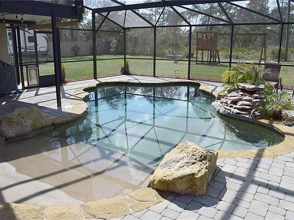 WHO WANTS THE WEKIVA SPRINGS STATE PARK IN YOUR BACK YARD? THIS 4-BED, 2-BATH CUSTOM POOL HOME IS LOCATED IN GATED WEKIVA GLEN, APOPKA, FL 32712. This is the "MOST AFFORDABLE" home in the neighborhood & sits on the best private 1/2-acre lot. Park your camper, RV, trailers, business vehicles, etc. If you enjoy entertaining, the covered patio & pool offers a custom-designed fully enclosed, solar heated, saltwater pool that has Pebble Tec finish, a huge sun shelf, bench seating, amazing Brazilian granite waterfall, pop up in-ground cleaning system, child safety fence & a separate 8-person hot tub. The lanai offers a covered seating area, a custom 10-foot bar w/refrigerator, running water & stainless sink that will make you the hit of the party. Upon entering the home, you're in a large living & dining room area w/vaulted ceilings & views of the pool & forest. The kitchen offers 36" oak cabinets, full appliance pkg, custom-tile back splash, large dinette. The family room has vaulted ceilings, a skylight, wood burning fireplace w/ natural stone, cedar mantel & French doors leading to the lanai. Addl features: block & stucco construction; front porch; split bdrm plan; large master bdrm & bath w/ dual closets, walk-in shower w/bench seating, dual vanity w/granite counter tops & vessel sinks; ceramic tile & laminate flooring; ceiling fans & light kits; window treatments; security system; newer roof; rain soft water softener; fenced-in back yard, low HOA fees, etc. Call for more info or to schedule a showing.
