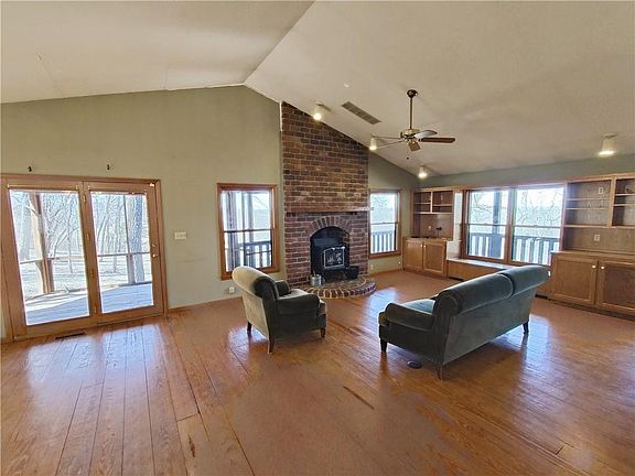 Embrace the beauty of rural living with this 14+ acre, 3 bedroom, 3 bathroom home tucked away amongst the trees. New carpet, fresh paint, and a wrap-around deck! The acreage includes open spaces for projects, a picturesque pond stocked with crappies, catfish, and bluegill, and plenty of treed space for shade. Whether traveling to Lawrence or Baldwin City, you are just a short car ride away! Welcome home!