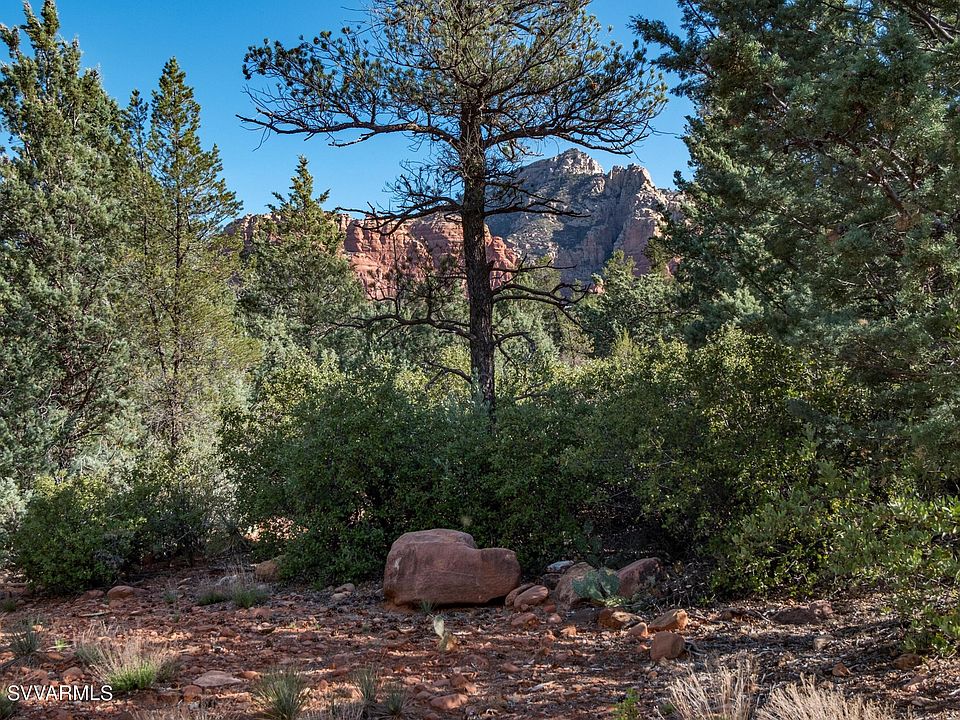 A beautifully treed lot with red rock and mountain views in Jordan Park, Sedona. This is an EASY BUILD, MOSTLY LEVEL LOT. THERE IS NO BUILDING ENVELOPE ON THIS .59AC LOT. Build anywhere on this lot, outside of City setbacks and the floodway which runs along the west side of the lot. Min home size: 2200sf. Max building height: 24 ft. This lot is part of the Jordan Park infrastructure, with underground utilities including natural gas, water, electricity and sewer. Enjoy the seasonal flow of Mormon Wash running the length of the west property edge, significantly below the building level of the lot. Nature and wildlife abounds here. This lot is a short stroll from hiking trails and Uptown Sedona goods and services including restaurants, coffee, & shopping. See attached flood map & documents.