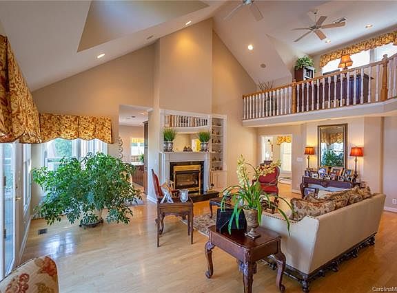 Elegant traditional and spacious 2 story home with year round views of Lake James and the Blue Ridge. Living room with cathedral ceiling and gas log fireplace with spectacular views from every window. Totally remodeled kitchen with granite counters & dark wood cabinetry. Sunroom, formal dining, deck access off kitchen, LR & MBR. Large and private master suite. Laundry on main level. Upper level has 2 bedrooms with jack & jill bath and finished room over garage with separate HVAC unit. Private loft office is also tucked away on this level. Lower level has complete second kitchen, family room with gas log stone FP, large bedroom with private bath, rec room for pool table with large walk in closet and full bath. Screened porch and golf cart garage. Take paved cart path or deep steps to lakeside gazebo and enjoy the beach and shared, floating dock. So much space for family and friends to gather and enjoy the lake and incredible views.