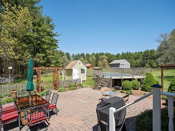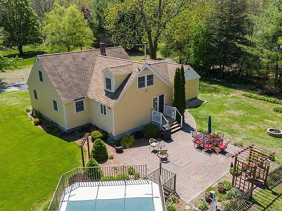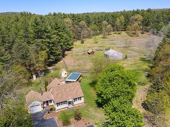 Over 6 acres of mostly field, serene and private setting with easy access to conservation land and extensive trails for riding. Picturesque Cape is beautifully maintained. This home is ready for horses with a 4 stall barn, riding ring, garage. Enjoy the summer in the above ground pool overlooking this amazing property. The heart of the home is a comfortable large, open kitchen with a breakfast area that leads out to the patio. A private first-floor corner office perfect for working from home or bedroom. The first-floor full bath is oversized, dining room, and bright living room, family room with a wood stove. The upstairs has 2 bedrooms with a half bath. This home is truly a gem. Title five in hand. Close to highway and center of town.