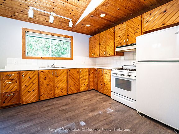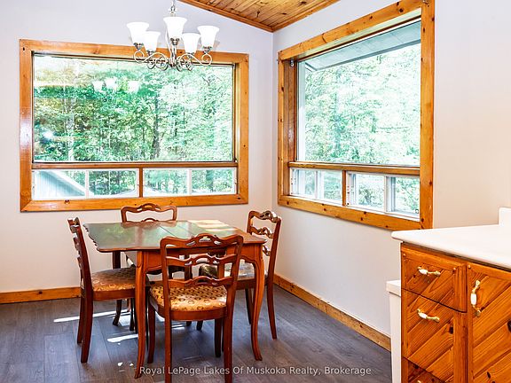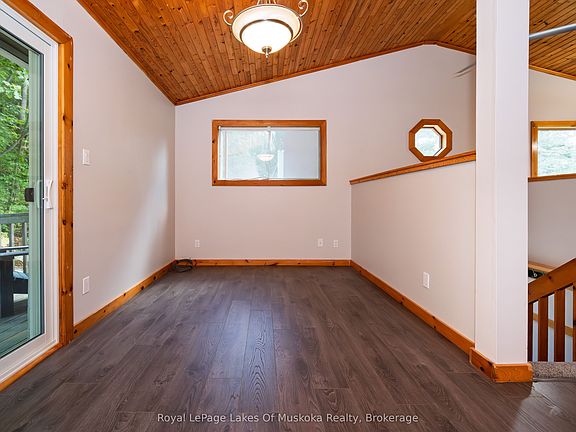 OPEN HOUSE SATURDAY SEPTEMBER 27TH AND SUNDAY SEPTEMBER 28TH 1-4. REFRESHMENTS SERVED. Welcome to this beautifully updated 3-bedroom, 2-bathroom home nestled on a serene 1.6-acre lot. Perfect for those seeking space, comfort, and country charm. Located just minutes from Hwy 11 and on a convenient school bus route, this home combines tranquil living with accessibility. Step inside and be greeted by stunning pine ceilings, brand-new flooring on the main level, and new carpet on the lower level. The sun-drenched living spaces are complemented by large windows and garden doors that invite you to sit back with your morning coffee and enjoy birdwatching from the comfort of your home.The spacious kitchen features a gas stove and flows seamlessly into the open-concept living and dining area, making it perfect for entertaining. All three bedrooms are generously sized, providing ample space for family or guests. Enjoy outdoor living with a walk-out deck on the main level and a walk-out patio below, ideal for summer barbecues or peaceful evenings under the stars. The fully finished lower level offers excellent in-law suite potential with its own entrance, Kitchenette and cozy living area. Additional features include: Large garage with space for vehicles, tools, or a workshop. New shingles in 2022, ample parking for guests, trailers, or toys. Invest in a multi-generational living space, this home has the charm, updates, and location to check every box.